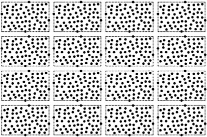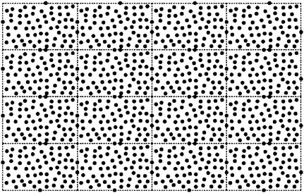 多个子光源对应的相同衍射级数的光斑共同组成的区域(361、362以及363,图中以矩形虚线表示)的大小、区域内斑点的间距均可以通过下式计算出: