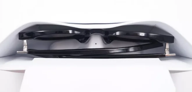 如华为X Gentle Monster Eyewear智能眼镜,这款眼镜收纳盒是一个充电仓,收纳盒里内置了电池,通过眼镜腿部的无线充接收电路,与充电盒中的发射电路对准,实现无线充电。