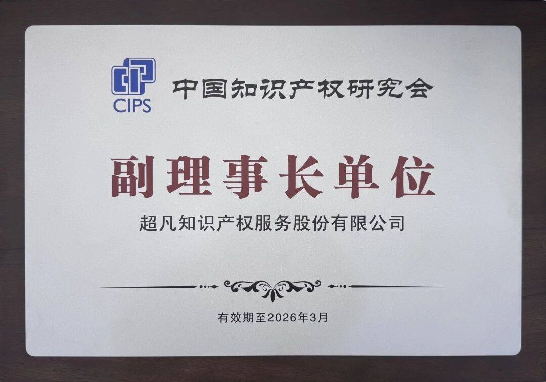 凭借在知识产权服务领域的卓越贡献与专业实力,超凡知识产权已经连续三年荣任中国知识产权研究会副理事长单位,展现出行业对超凡知识产权专业能力与行业影响力的高度认可。