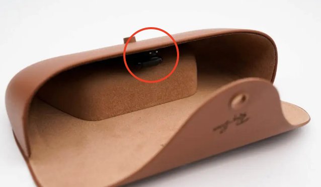 如华为X Gentle Monster Eyewear智能眼镜,这款眼镜收纳盒是一个充电仓,收纳盒里内置了电池,通过眼镜腿部的无线充接收电路,与充电盒中的发射电路对准,实现无线充电。